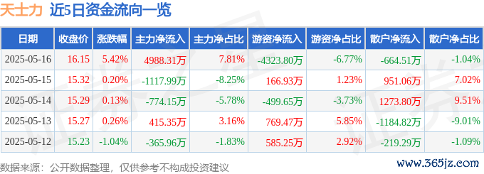 5月16日的资金流向数据方面,主力资金净流入4988.31万元,占总成交额7.81%,游资资金净流出4323.8万元,占总成交额6.77%,散户资金净流出664.51万元,占总成交额1.04%。